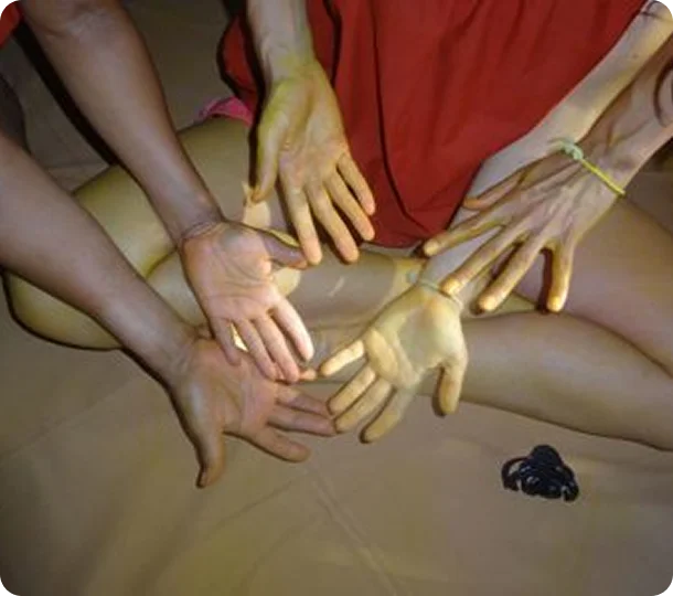 The class begins with the students chanting a Pali invocation asking for help and protection from the Buddha and his personal doctor, Maw Chiwok–the latter sits garlanded with jasmine just below the Buddha on the shrine in our training space. This invocation is followed by one hour of Rasidaton, a Thai Yoga developed by another disciple of the Buddha, the forest hermit, Rusi–he usually sits next to Maw Chiwok in Thai medical shrines.